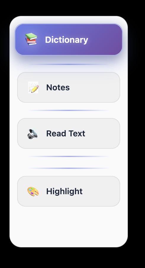 - Convert selected text to speech for auditory learning.